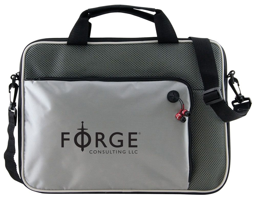 Add your logo to a high-quality laptop case for an excellent practical gift for anyone. Prominent and professional, this laptop case is sure to be a promotional hit! This notebook briefcase features an adjustable and detachable shoulder strap and front zipper pocket with an organizer and earphone port.